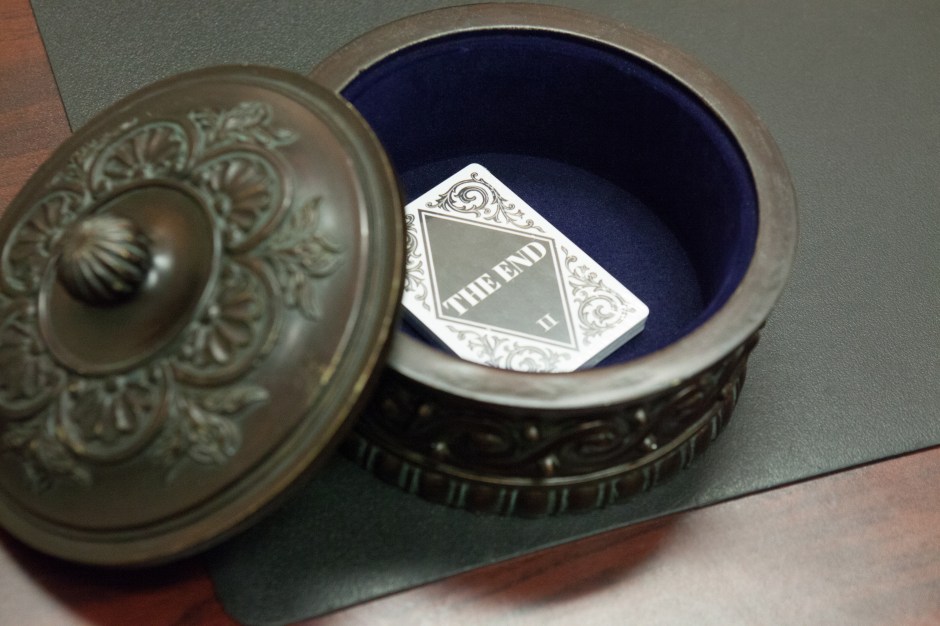 The End is a month-long interactive experience that blends immersive theater and alternate reality gaming. Its aim is to help players contemplate mortality through small daily reflections on the meaning of life and confront one’s fears about death. At the core of the game is a conversation with a character called The End who helps players navigate a unique deck of cards. Each card symbolizes a “quest” for a player to unlock, each slightly different in the content and form it asks the player to engage in. From writing one’s own obituary to strolling through a cemetery, listening to a guided mediation to researching burial options, the game gives a playful way to tackle a topic that is often easier to avoid.